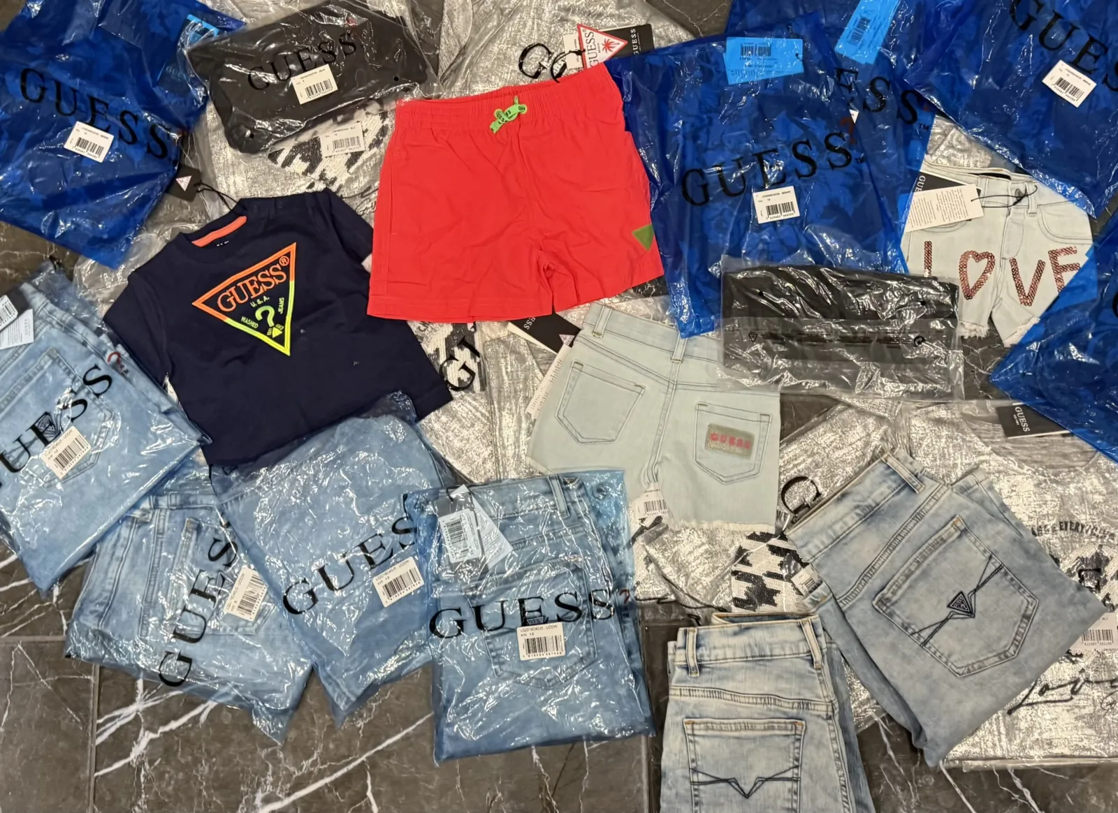 Nauji , originalūs guess drabuželiai vaikams , pakuotėje 27vnt , kainos ant etikečių nurodytos kaip parduotuvėse ( nepigios ) puikiai tinka prekiaujantiems apranga , ar norintiems pradėti prekiauti
