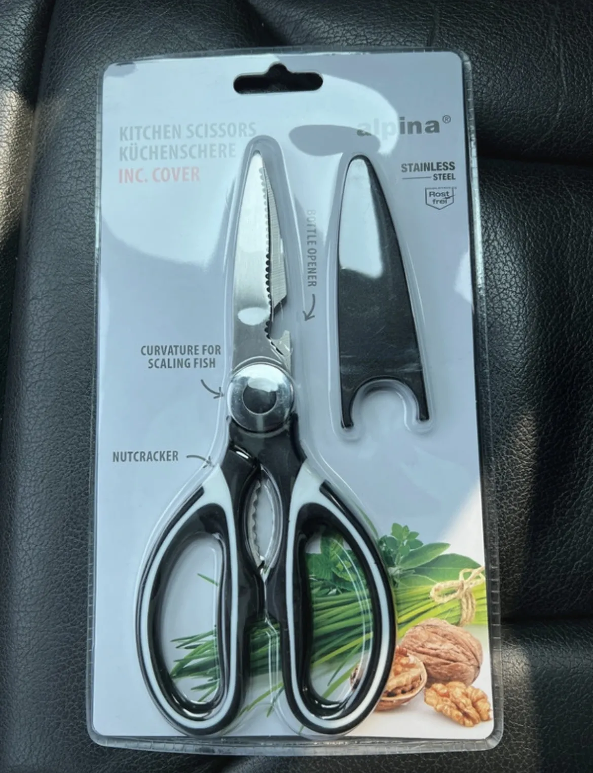 daug funkcijų šiose žirklėse - galima gliaudyti riešutus, valyti žuvies žvynus, kirpti paukštienos kaulus, daržoves. Žirklėse yra įmontuotas butelių atidarytuvas