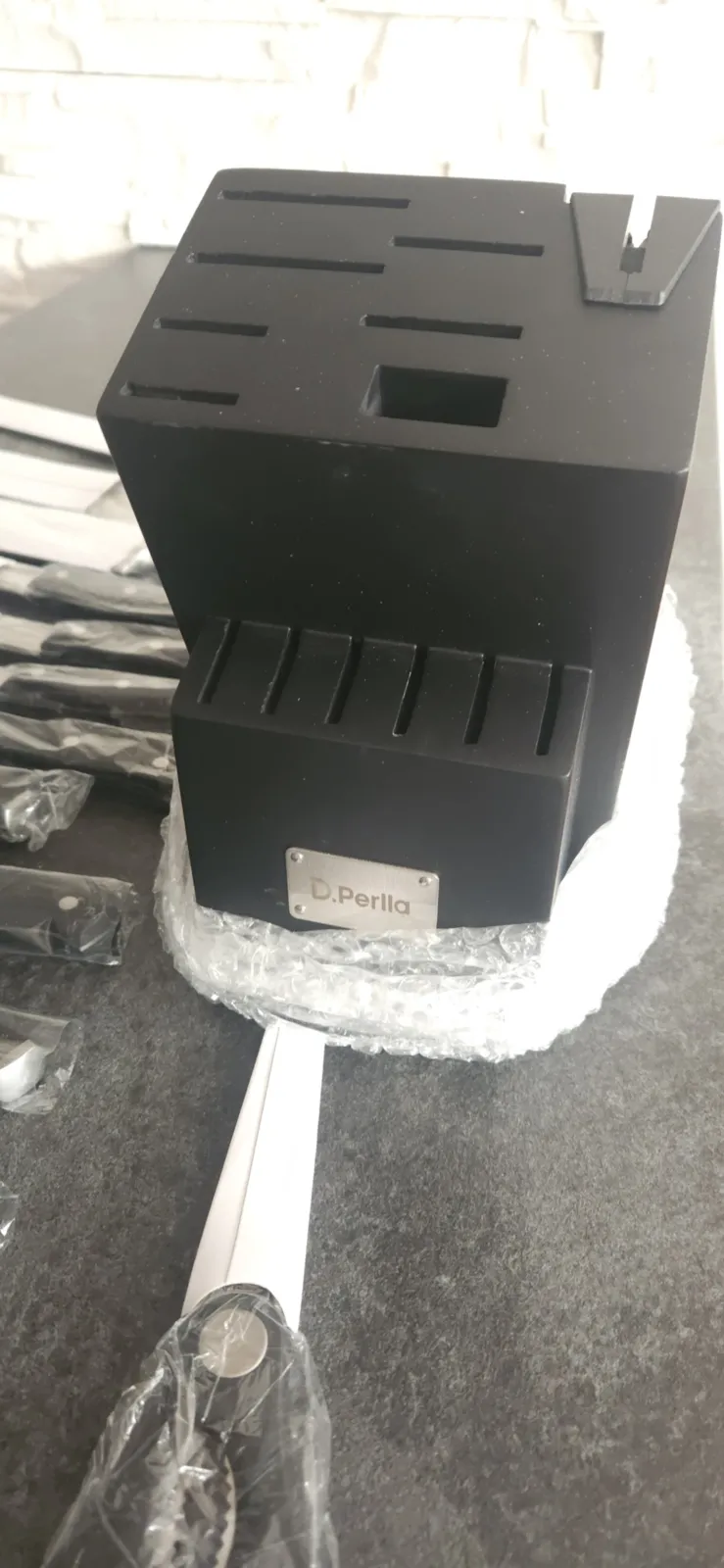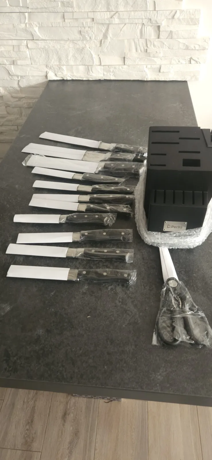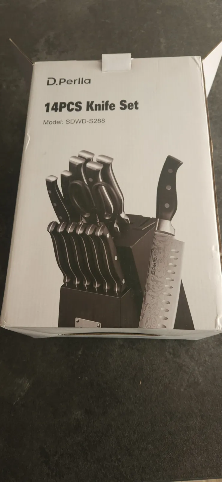 D.Perlla peilių blokelių rinkinys, 14 dalių savaime galandantis peilių blokelis, aštrus nerūdijančio plieno peilių rinkinys su plastikine rankena ir mediniu blokeliu, profesionalus virtuvinių peilių rinkinys, juodas
