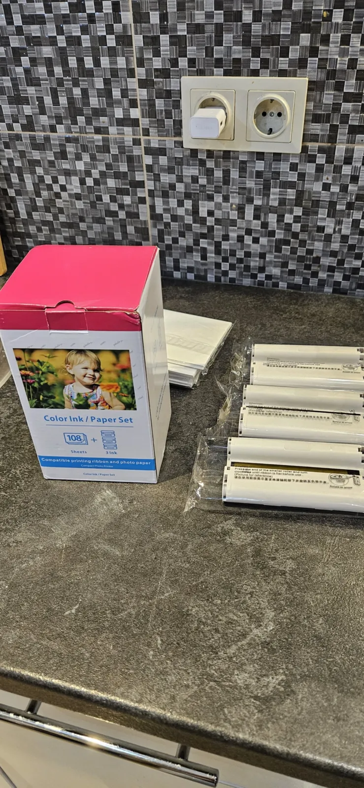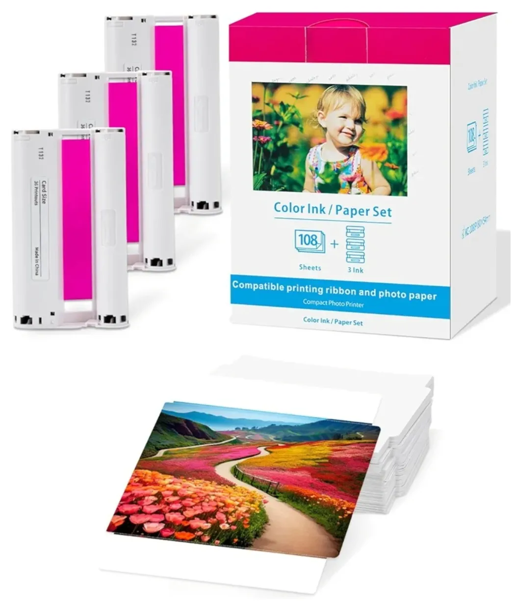 Nuotraukų popierius ir kasetė, suderinama su „Canon Selphy CP1500“, 54 x 86 mm, KC-108IP (3 x KC-36IP), 2,1 x 3,4 col., kortelės dydis, skirta „Selphy CP1500 CP1300 CP1200 CP1000 CP910“, 3 kasetės ir 108 x popieriaus