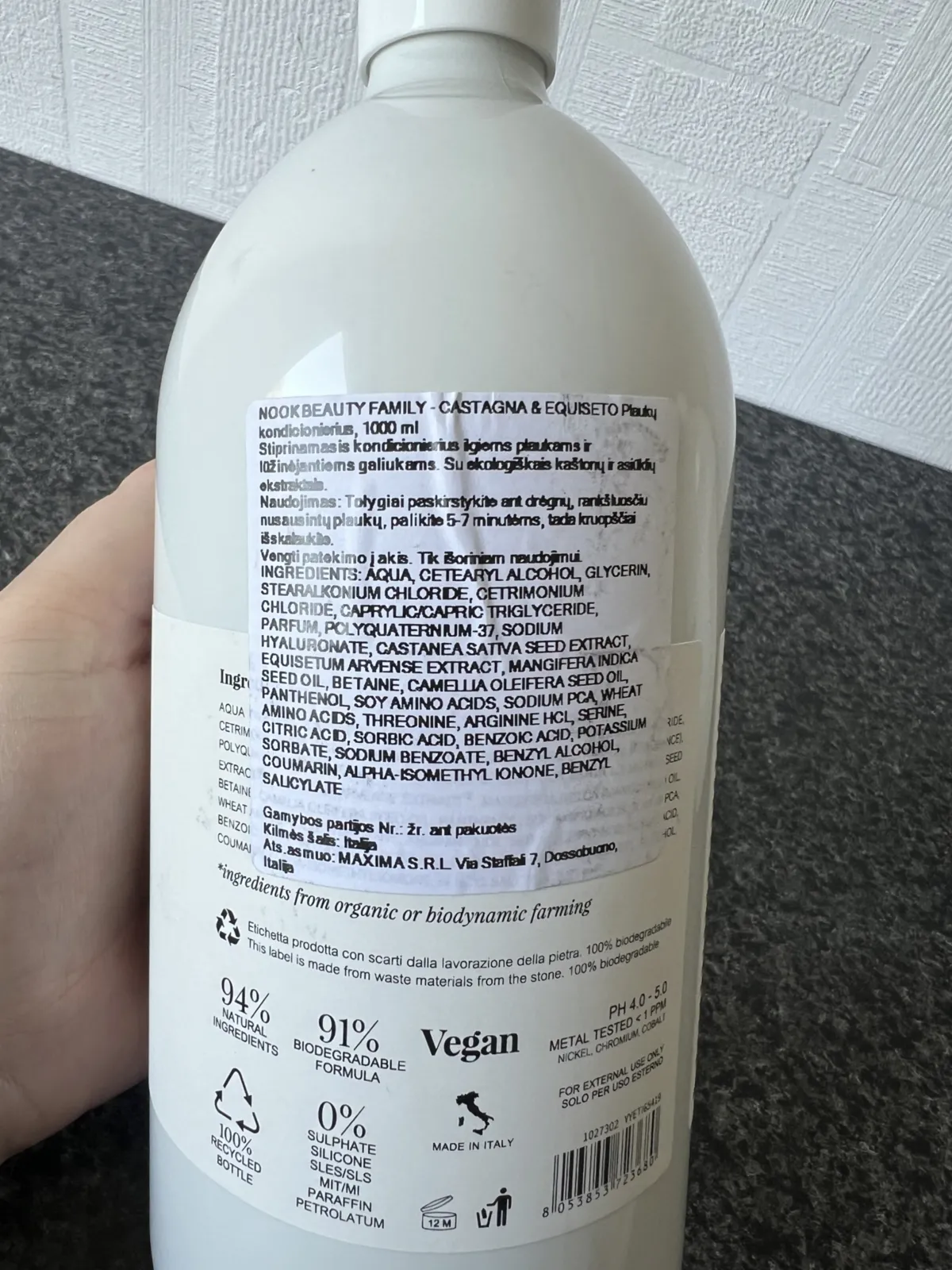 Ph 4.0–5.0. Sudėtyje yra ekologiško kaštonų ekstrakto, kuris stiprina ir maitina plaukus, ir ekologiško asiūklio ekstrakto, pasižyminčio mineralizuojančiomis ir balansuojančiomis savybėmis. Suteikia plaukams minkštumo ir blizgesio jų neapsunkindamas, daro juos lengviau paklusnius ir iššukuojamus.