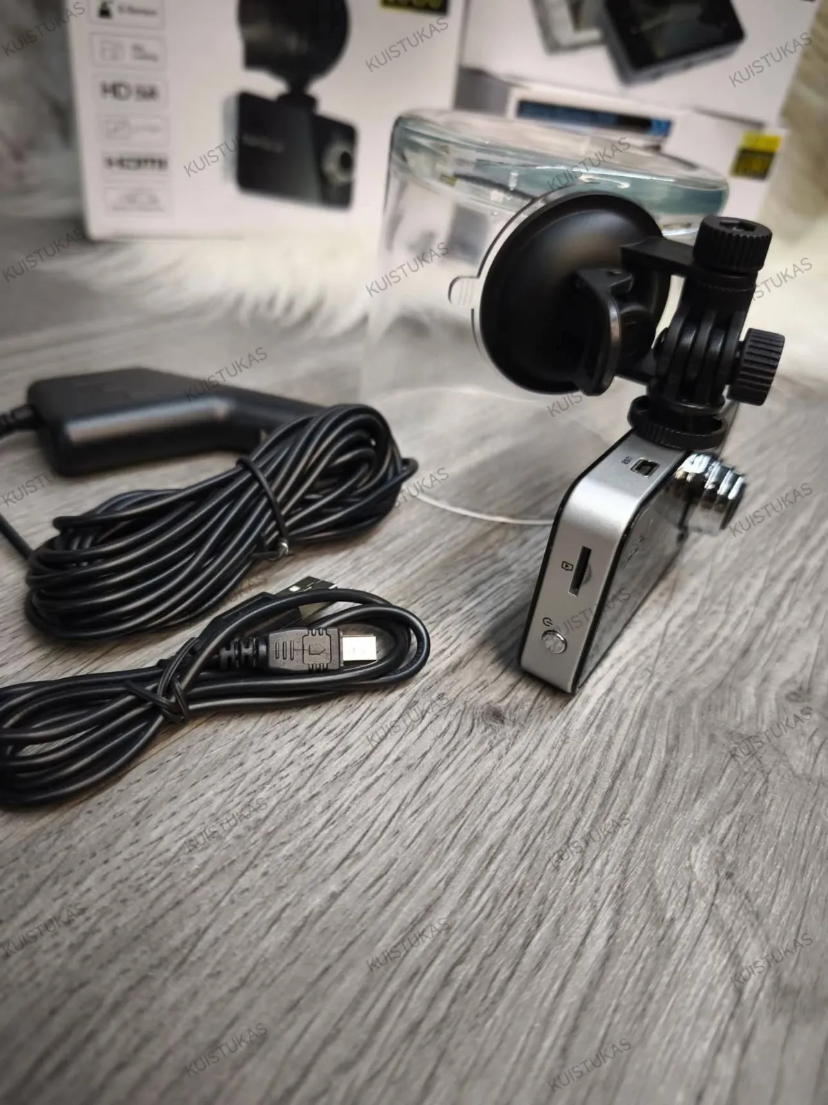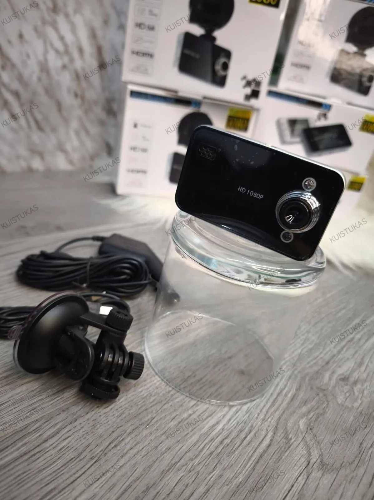 •Komplektacija: FULL HD DVR kamera, automobilinis kroviklis su ilgu laidu, laikiklis prie stiklo (reguliuojamas visomis kryptimis, tinkamas tvirtinti ir ant kitų paviršių, pavyzdžiui, motociklo bako), perdavimo laidas.