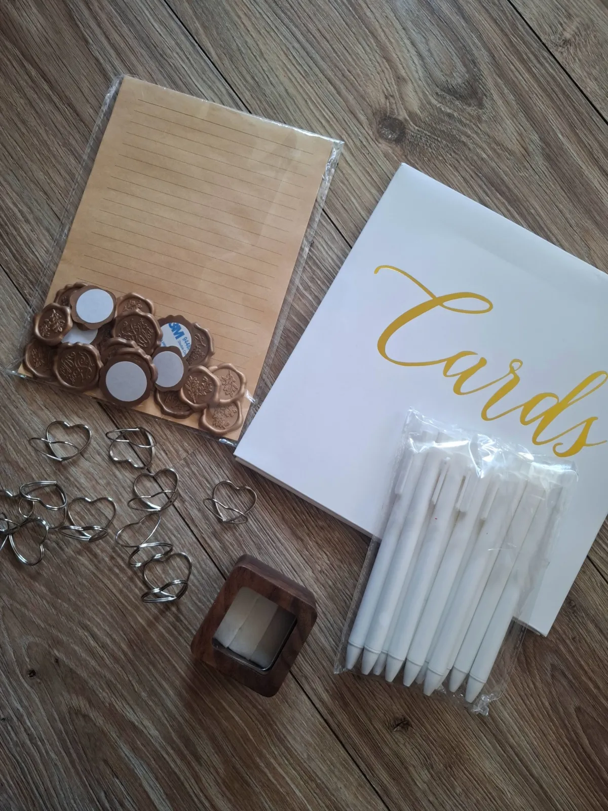 Tušinukai, anketų/nuotraukų dėžutė, kortelių laikikliai, popierius, antspaudų lipdukai, žiedų dežutė