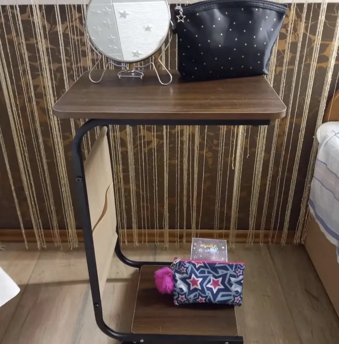 C formos mobilus šoninis stalas su ratais, sofos šoninis stalas svetainei ir miegamajam, daugiafunkcinė laikykla, kietmedžio tekstūros geležies meno nakties stalelis, kilnojamas arbatos stalas, paprastas modernus kampinis stalas, buitinė užkandžių laikykla, erdvę taupantis šoninis spintelė, nuomai