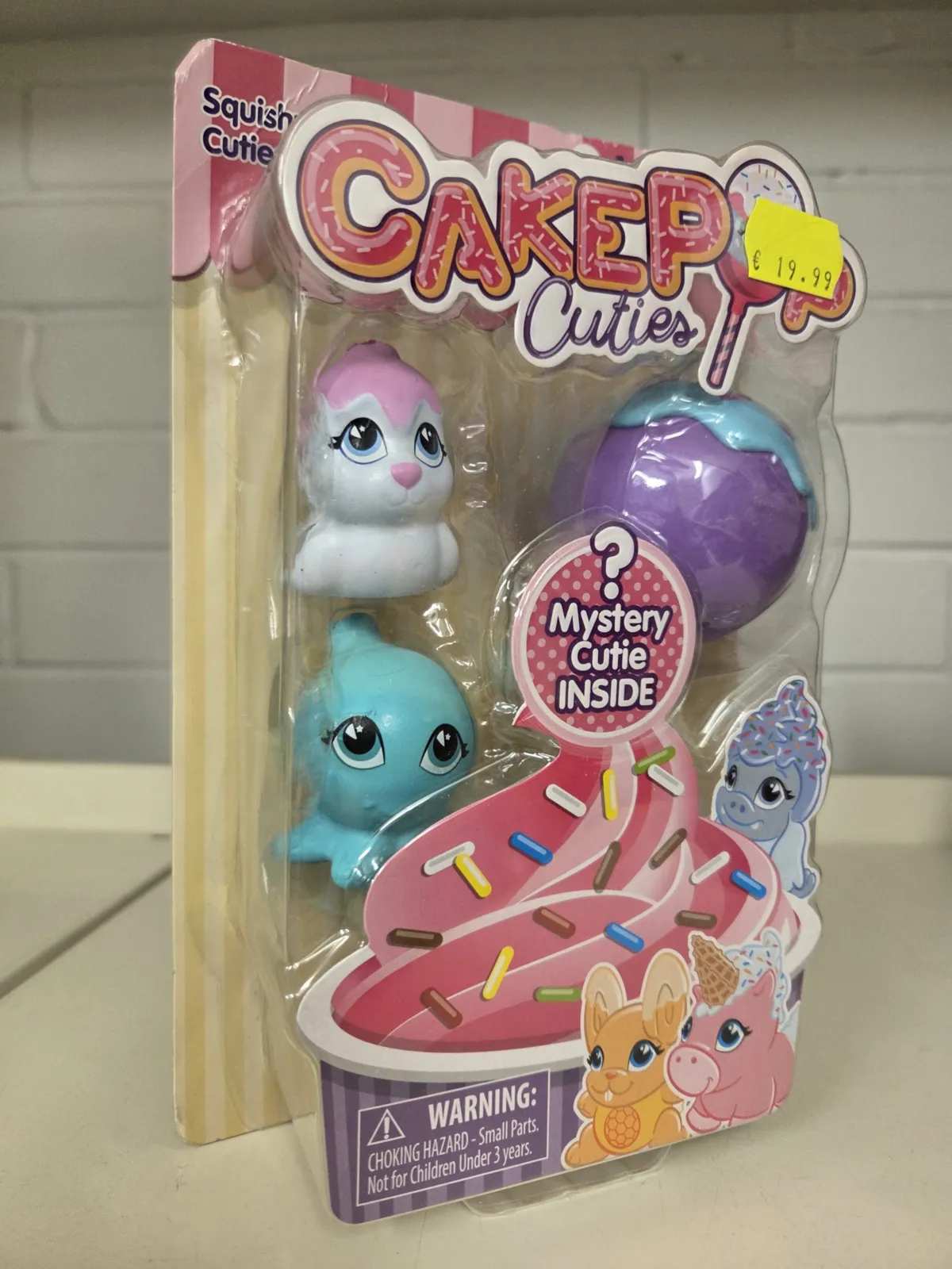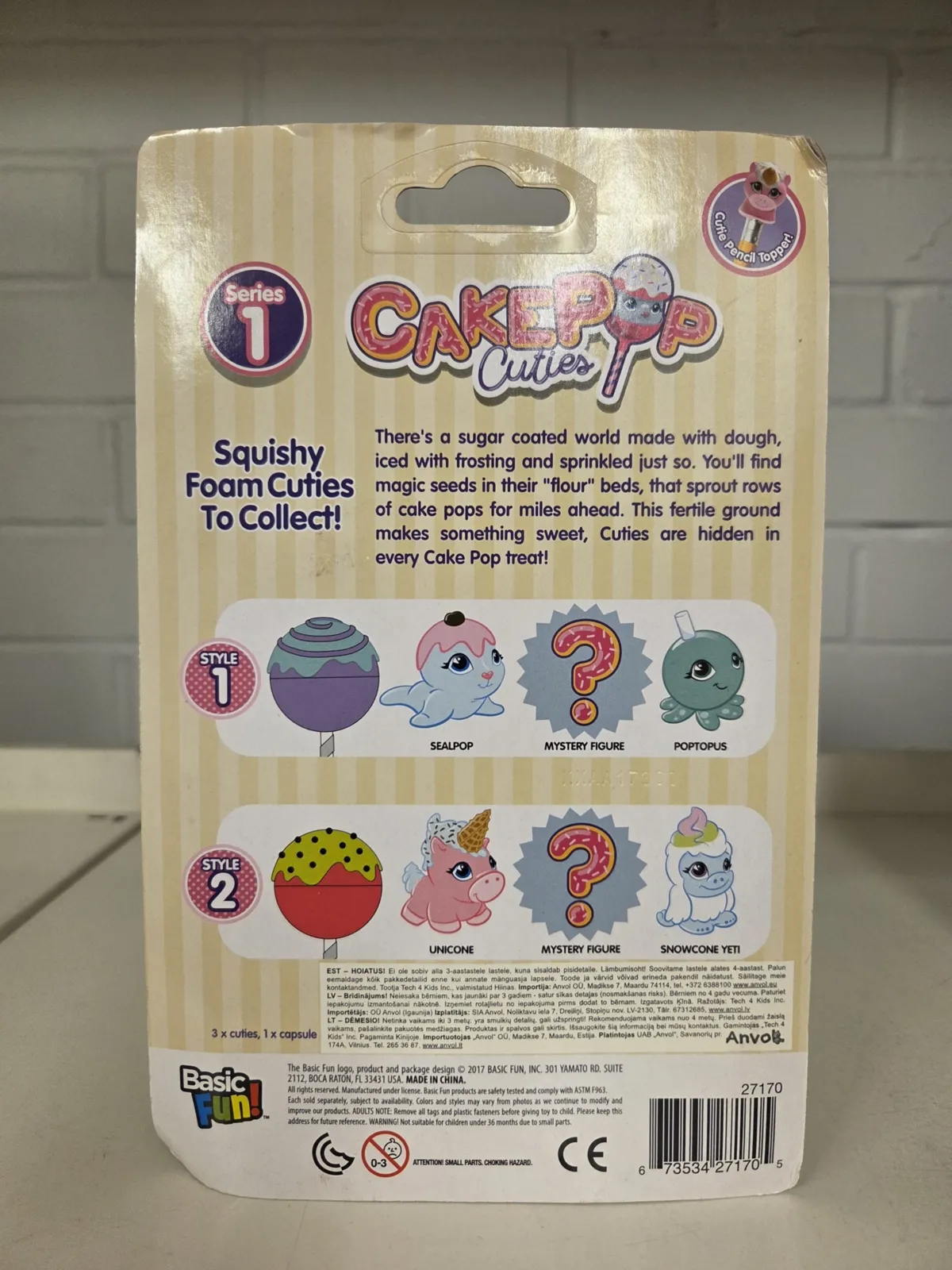 Žaislai yra minkšti, juos galima spausti (squishy), o Cake Pop pakuotė gali būti naudojama kaip stovas personažui eksponuoti.