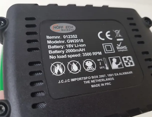 18V / 2000mAH.