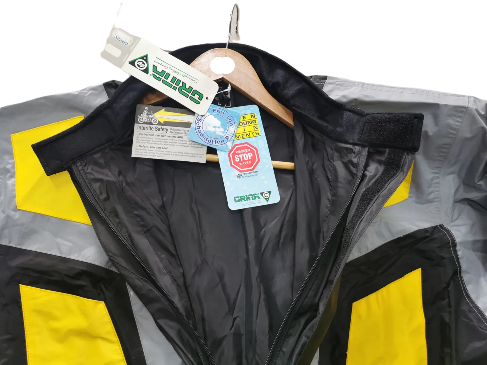 Ryškios spalvos ir atšvaitinis audinys padidina matomumą ir vartotojo saugumą. Labai gerai tinka motociklininkams ir dviratininkams.