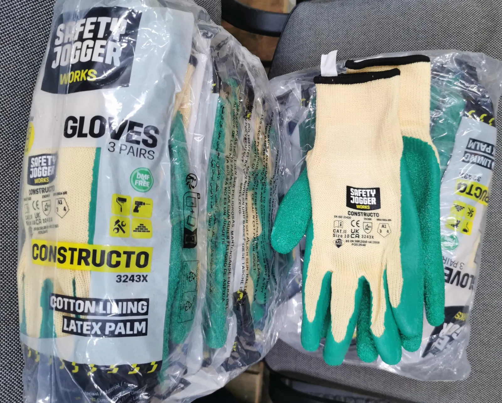 Medvilnės/poliesterio su žalia latekso danga ant delno. Dažniausiai naudojamos ten kur reikalingas didelis atsparumas dilimui. Itin lanksčios ir tvirtos. Raukšlėta latekso danga suteikia padidintą sukibimą.