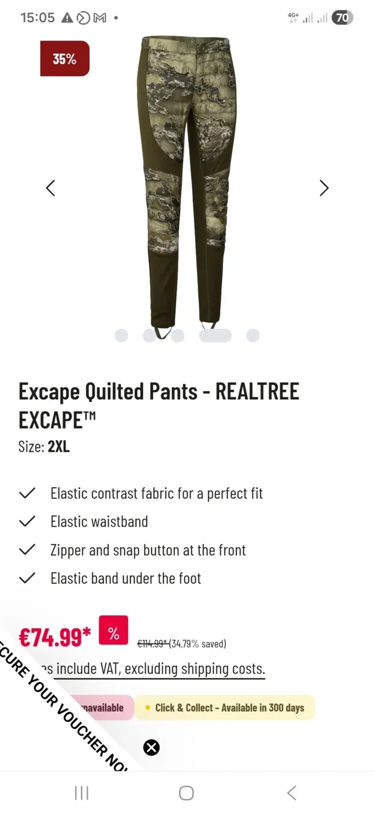 DEERHUNTER Excape Quilted dygsniuotos kelnės – šiltos, vandeniui atsparios ir patogios žiemos kelnės, skirtos aktyviam laisvalaikiui. Elastingi intarpai kontrastinėse zonose, tamprus juosmuo ir klešnės užtikrina gerą prigludimą bei judėjimo laisvę. Užsegimas užtrauktuku ir spaude suteikia papildomo patogumo.