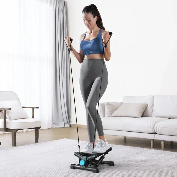 MERACH Kompaktiškas namų treniruoklis efektyviam viso kūno treniravimui su pasukama konstrukcija, reguliuojamu žingsnio ilgiu ir keliams draugiška smūgių amortizacija. Tylus veikimas ir tvirta konstrukcija atlaiko iki 150 kg. Tinka 145–188 cm ūgiui.